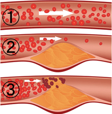 冠状動脈の動脈硬化が進み、血管がしだいに